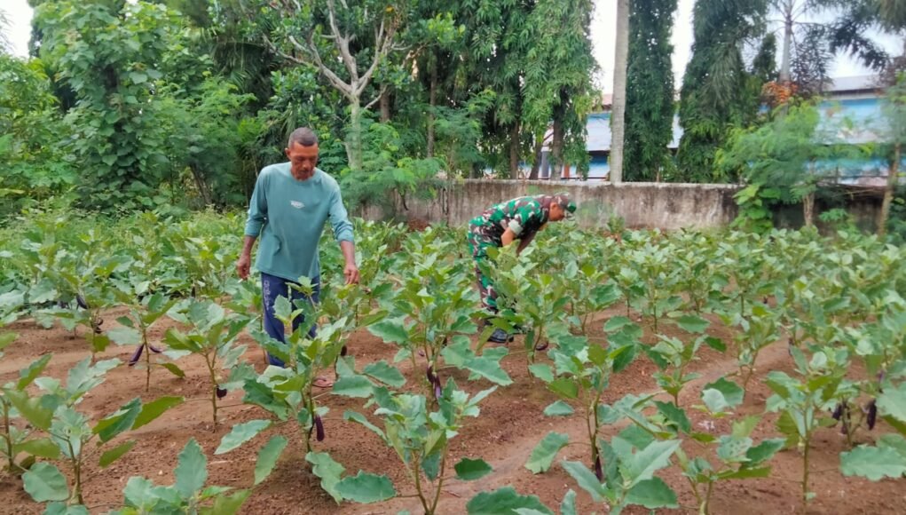 Menurutnya, langkah sederhana seperti membersihkan daun yang rusak dapat mencegah penyebaran penyakit pada tanaman dan menjaga produktivitas buah terong agar tetap optimal. “Dengan perawatan yang baik, tanaman akan tumbuh subur dan hasil panen pun bisa meningkat. Jika hasilnya baik, tentu ekonomi petani juga akan ikut terangkat,” ujar Serka Insarlin.