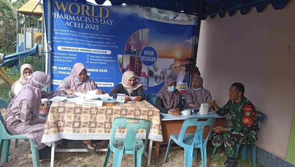 MEDIANAD.COM, SABANG – Babinsa 05 Gampong Aneuk Laot Koramil 02/Sukakarya, Kodim 0112/Sabang, Serka Insarlin, melaksanakan pendampingan pada kegiatan World Pharmacist Day 2025 yang berlangsung di Puskesmas Pembantu (Pustu) Jurong Putro Haloë, Gampong Aneuk Laot. Kegiatan ini menjadi momentum penting dalam meningkatkan literasi kesehatan masyarakat, khususnya terkait peran tenaga farmasi dalam pelayanan kesehatan sehari-hari, (15/11/2025).