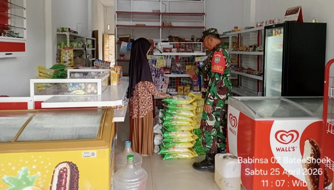 Langkah ini merupakan bagian dari peran aktif Babinsa dalam memantau kondisi wilayah, khususnya terkait kebutuhan dasar masyarakat, serta menjaga situasi ekonomi tetap kondusif.