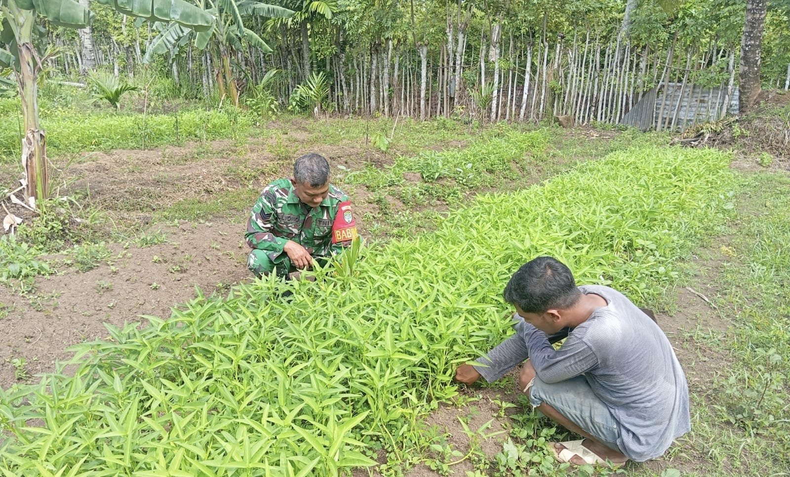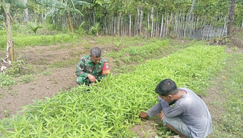 MEDIANAD.COM, SABANG – Dalam upaya mendukung ketahanan pangan sekaligus mempererat hubungan dengan masyarakat, Babinsa 10 Koramil 01/Sukajaya Kodim 0112/Sabang, Serka Muliyono, turun langsung membantu petani binaan melakukan perawatan tanaman sayuran kangkung di wilayah binaannya.