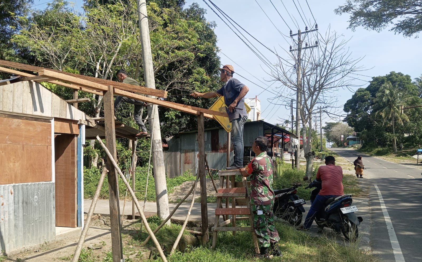 MEDIANAD.COM, SABANG– Sebagai wujud kepedulian dan upaya mempererat hubungan antara TNI dan masyarakat, Babinsa Koramil 01/Sukajaya Kodim 0112/Sabang, Serka Muliyono, membantu warga yang sedang membangun warung di Jurong Sejahtera, Gampong Cot Abeuk, Kecamatan Sukajaya, Kota Sabang, Rabu (8/10/2025).