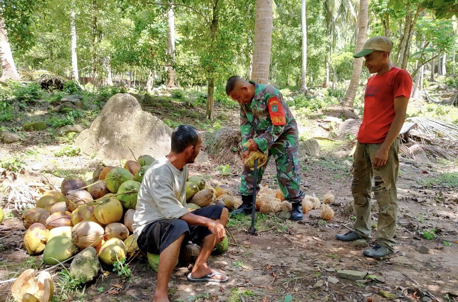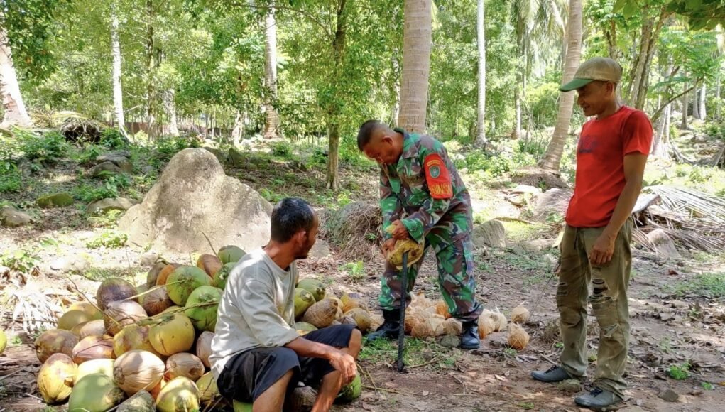 MEDIANAD.COM, SABANG – Dalam upaya mempererat hubungan dengan masyarakat sekaligus memberikan motivasi kepada para petani, Babinsa Koramil 01/Sukajaya Kodim 0112/Sabang, Serma Mahsun, turut membantu warga binaan memanen kelapa di Jurong Kulam, Gampong Keuneukai, Kecamatan Sukamakmue, Kota Sabang, Jum’at (27/03/2026).