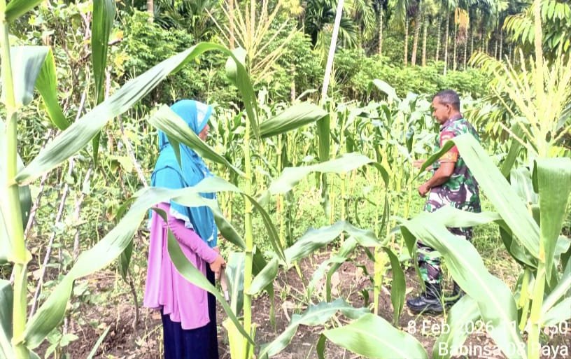 MEDIANAD.COM, SABANG — Dalam rangka mendukung program swasembada pangan nasional, Babinsa 08 Gampong Paya, Koramil 01/Sukajaya, Kodim 0112/Sabang, Sertu Junaidi, melaksanakan pendampingan kepada Kelompok Tani (Poktan) Maju Beurata dengan melakukan monitoring tumbuh kembang tanaman jagung manis, bertempat di Jurong Chik Alu Kala, Gampong Paya, Kecamatan Sukamakmue, Kota Sabang, Minggu (8/2/2026).