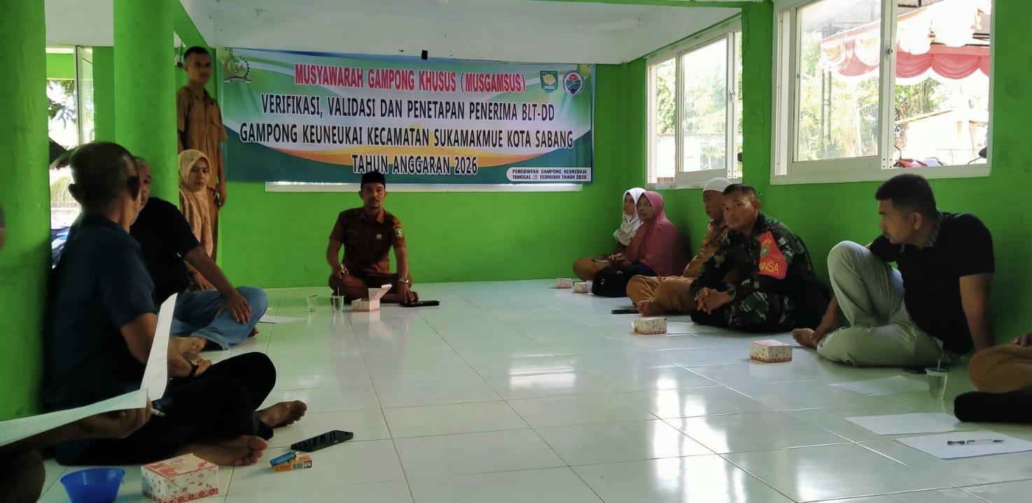 Rapat ini bertujuan untuk memastikan proses penetapan penerima BLT berjalan secara transparan, tepat sasaran, dan sesuai dengan ketentuan yang berlaku. Dalam rapat tersebut disepakati bahwa sebanyak 27 orang warga Gampong Keuneukai ditetapkan sebagai penerima BLT TA 2026, berdasarkan hasil musyawarah dan usulan dari masing-masing jurong sesuai kriteria yang telah ditentukan.