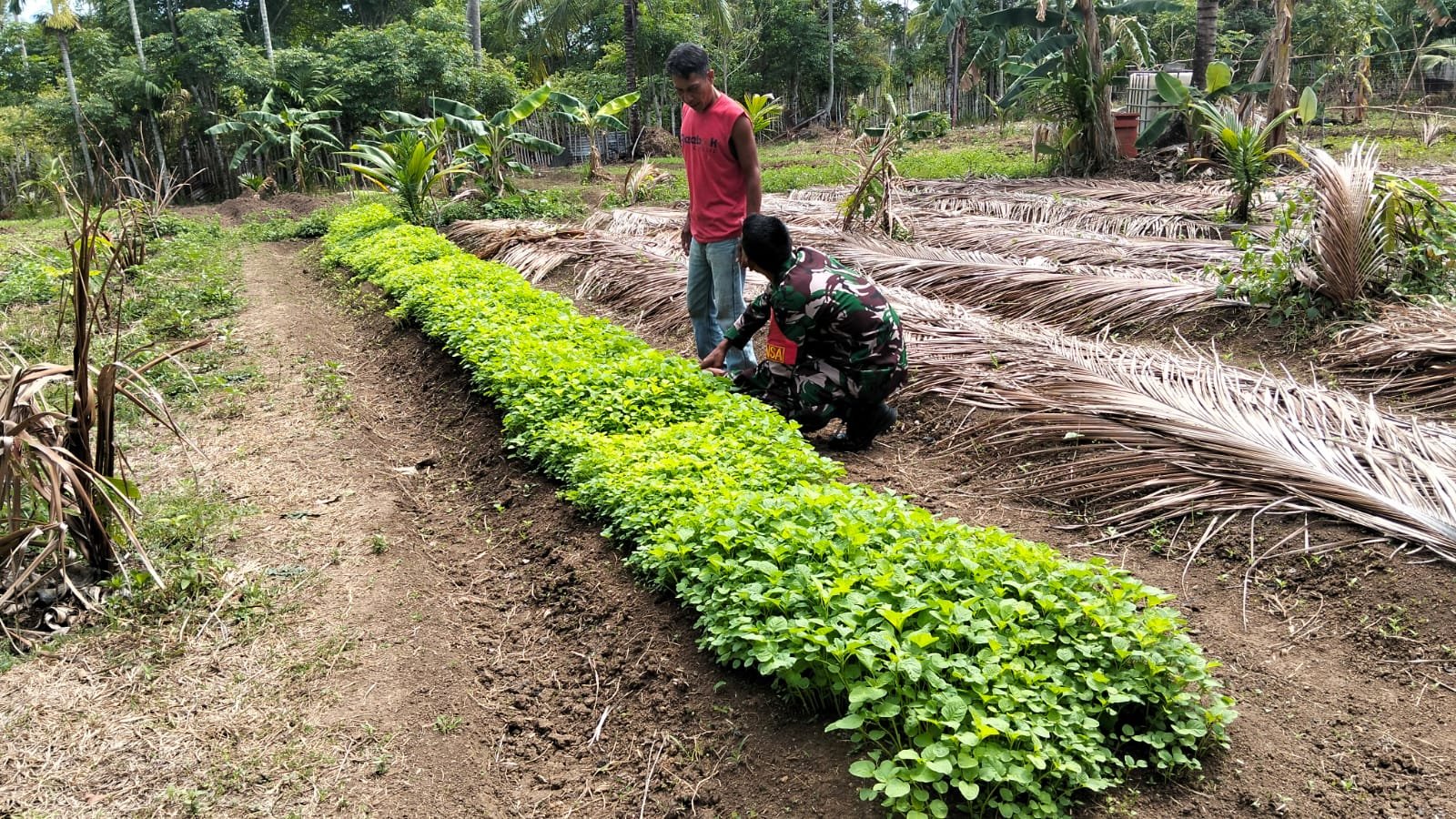 Dalam kesempatan tersebut, Serda M. Khadafi memberikan arahan kepada petani agar rutin melakukan perawatan tanaman secara efektif. Ia menekankan bahwa keberhasilan panen sangat bergantung pada konsistensi dalam perawatan, mulai dari penyiraman, pemupukan, hingga pengendalian hama.