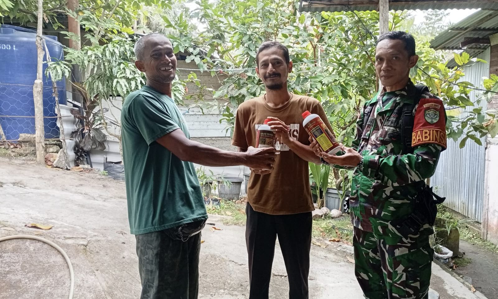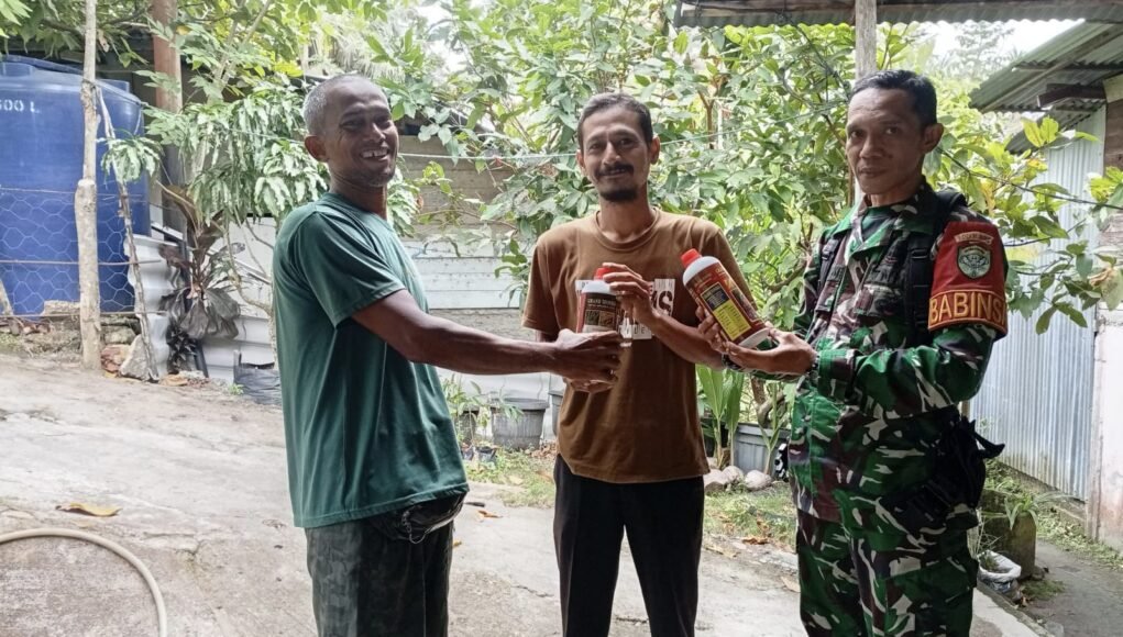 MEDIANAD.COM, SABANG – Dalam upaya mendukung ketahanan pangan di wilayah, Babinsa 05 Gampong Aneuk Laot, Koramil 02/Sukakarya, Kodim 0112/Sabang, Serka Insarlin mendampingi ketua kelompok tani, Zulfiadi, dalam penyaluran bantuan pupuk organik cair Grand Tomiks kepada para petani di Jurong Putro Bungsu, Gampong Aneuk Laot, Minggu (7/9/2025).