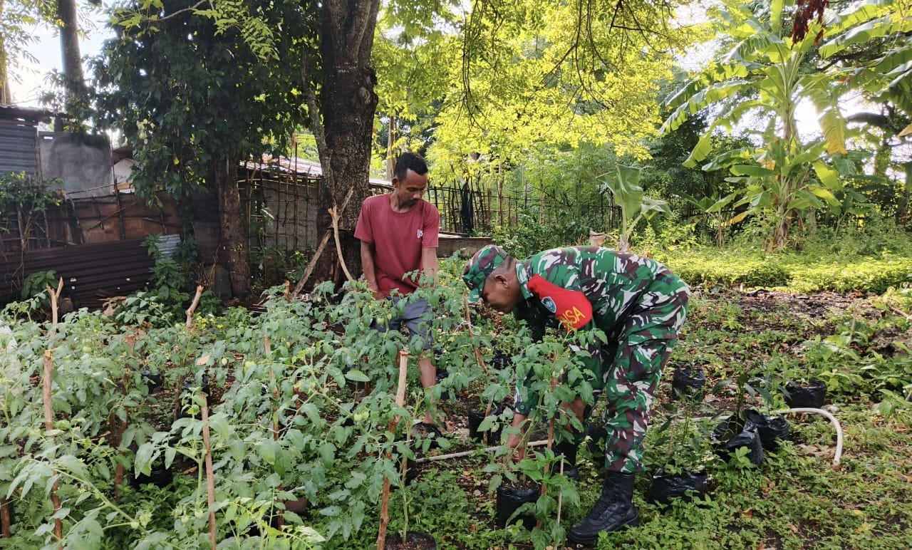 Sertu Darwis menyampaikan bahwa kegiatan ini tidak hanya bertujuan menjaga kebersihan dan keasrian lingkungan, tetapi juga sebagai langkah konkret dalam meningkatkan kesejahteraan masyarakat melalui sektor pertanian. “Kami terus mendorong warga untuk memanfaatkan setiap lahan yang ada agar bisa ditanami tanaman produktif seperti tomat, cabai, dan sayuran lainnya,” ujarnya.