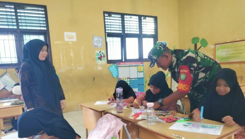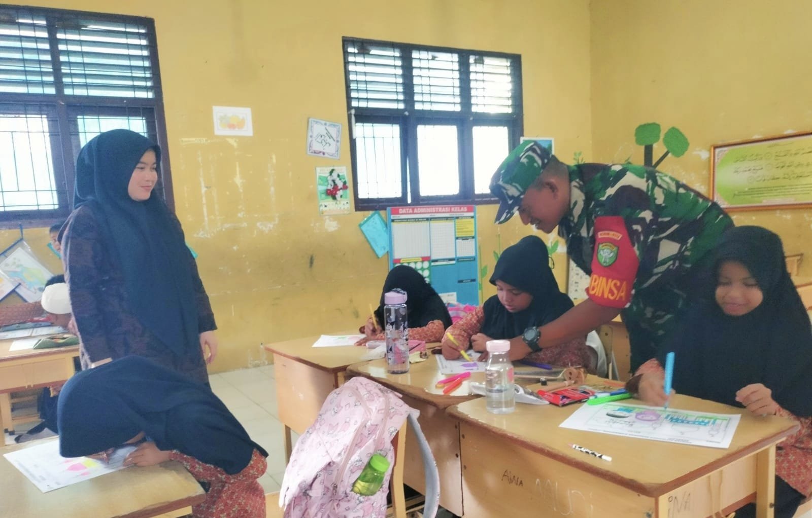 Dalam kunjungannya, Sertu Hendra melihat secara langsung aktivitas para siswa yang tengah mengikuti kegiatan menggambar dengan bimbingan guru pendamping. Suasana belajar terlihat penuh semangat, di mana para siswa antusias menuangkan kreativitas mereka melalui karya gambar.