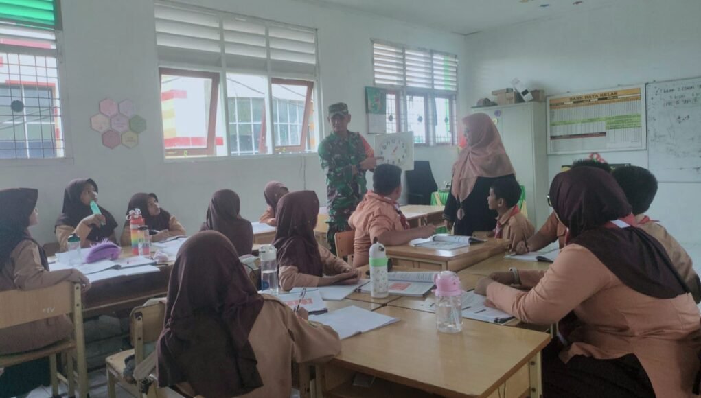 NEDIANAD.COM, SABANG – Upaya menanamkan rasa cinta tanah air sejak dini terus digencarkan TNI AD melalui kegiatan pembinaan teritorial. Babinsa 08 Gampong Kuta Ateuh, Koramil 02/Sukakarya, Kodim 0112/Sabang, Serma Syafrial, memberikan materi wawasan kebangsaan kepada para siswa SD Negeri 1 Sabang yang berlokasi di Jalan O. Surapati, Jurong Sutedjo, Gampong Kuta Ateuh, Kecamatan Sukakarya, Jumat (22/8/2025).