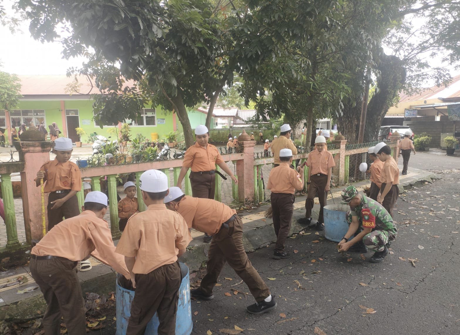 Dalam kegiatan tersebut, tampak para siswa sangat antusias mengikuti arahan Babinsa. Mereka bekerja sama memungut daun dan ranting sambil belajar arti penting menjaga lingkungan. Pelda Syafrial pun turut memberikan contoh langsung dengan turun tangan membersihkan area sekolah bersama mereka.