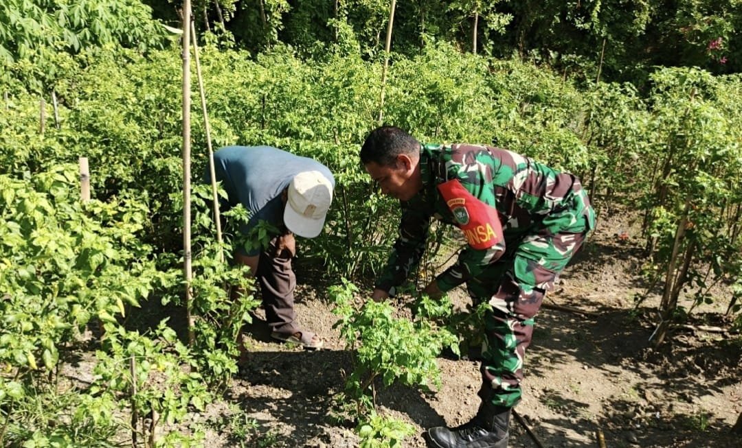 Dalam kesempatan tersebut, Sertu Darwis bersama warga membersihkan area kebun agar tanaman cabai dapat tumbuh dengan baik dan menghasilkan secara optimal. Tanaman cabai dipilih karena memiliki masa panen yang relatif cepat serta nilai ekonomi yang cukup tinggi, sehingga diharapkan dapat membantu meningkatkan pendapatan masyarakat.