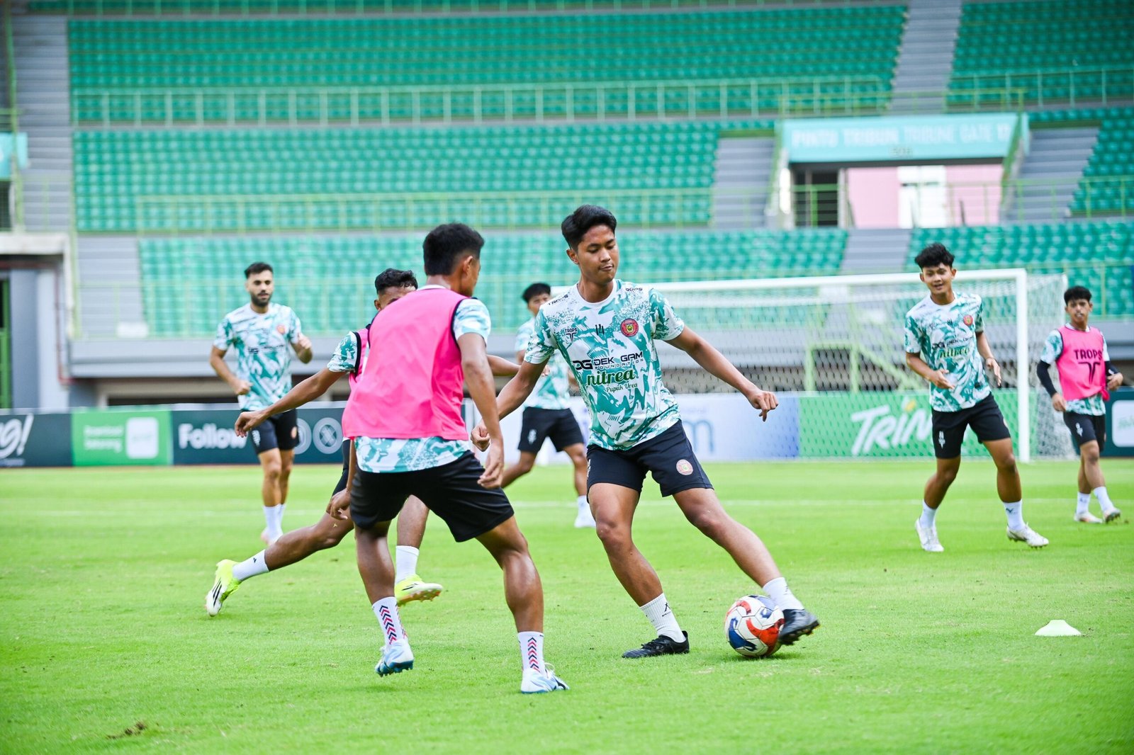 Pemain Persiraja Banda Aceh, lakukan latihan ringan di Stadion Patriot Candrabhaga, Sabtu (21/02) 2026. (foto/mo persiraja)