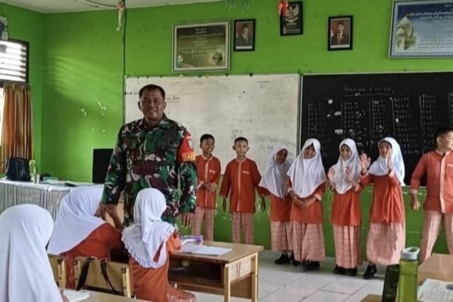 Babinsa Koramil 02/Sukakarya Tanamkan Wawasan Kebangsaan Lewat Pelajaran Bahasa Indonesia di SDN 2 Sabang