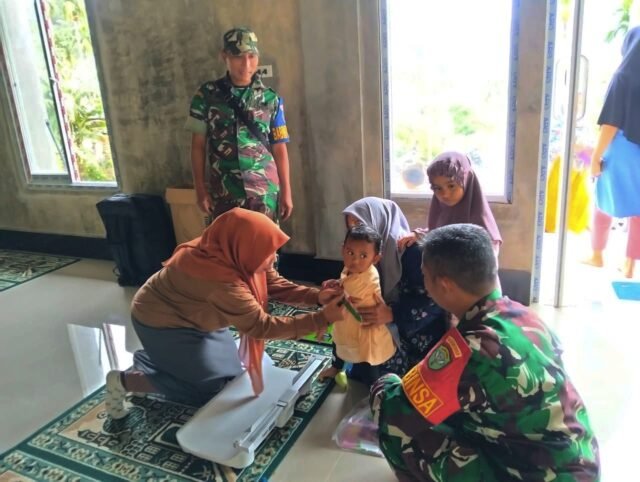 MEDIANAD.COM, SABANG – Babinsa 03 Gampong Paya Seunara, Koramil 02/Sukakarya Kodim 0112/Sabang, Serka Basuki, melaksanakan pemantauan kegiatan Posyandu Balita di Jurong Blanggarut, Gampong Paya Seunara, Kecamatan Sukamakmue, Kota Sabang, Kamis (2/10/2025).