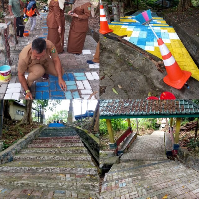 Kerja swadaya itu turut didampingi oleh Ir. Sawidar, M.T, Kabid. Cipta Karya PUPR, juga ikut ambil bagian dalam mengarahkan dan mengkombinasi warna pada setiap bagian anak tangga di lokasi tersebut.