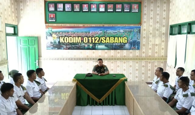MEDIANAD.COM, SABANG — Komandan Kodim 0112/Sabang, Letkol Kav Edi Purwanto, S.I.P., menerima laporan dari 26 orang SPPI yang telah selesai mengikuti pendidikan program Sarjana Penggerak Pembangunan Indonesia (SPPI) di lembaga pendidikan khususnya di wilayah Aceh. Laporan tersebut disampaikan dalam sebuah kegiatan resmi yang berlangsung di Aula Makodim 0112/Sabang, (22/7/2025).