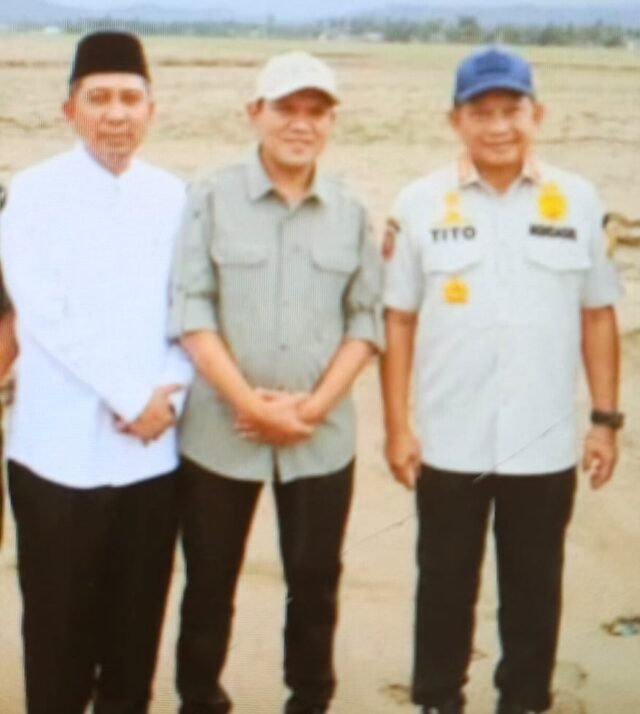 Ketua DPRK Bireuen, Juniadi SH, mendampingi Menteri Pekerjaan Umum dan Perumahan Rakyat (PUPR) Dody Hanggodo serta Bupati Mukhlis ST dalam kunjungan kerja di kabupaten tersebut, sekaligus meninjau langsung sejumlah infrastruktur/ bangunan yang rusak akibat bencana hidrometeorologi, Selasa (24/02) 2026. (foto/istimewa)