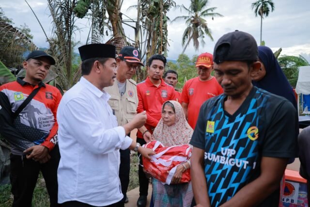 MEDIANAD.COM, ACEH BESAR: Wakil Bupati (Wabup) Aceh Besar, Syukri A Jalil bersama Kalaksa BPBD Ridwan Jamil S.Sos MSi, Plt Kepala Dinas Sosial Aceh Besar, Aulia Rahman, SSTP, MSi dan Camat Sukamakmur Azhari SH MSi, Senin (28/09) sore serahkan bantuan masa panik secara