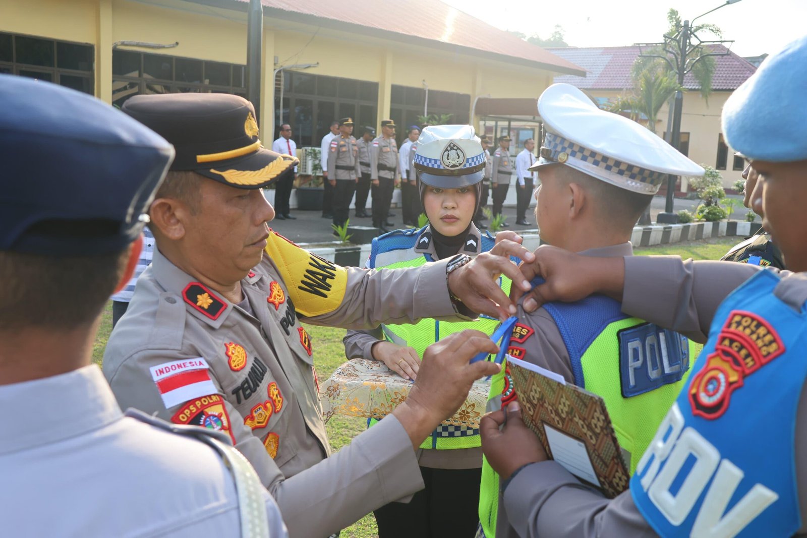 Rangkaian kegiatan apel gelar pasukan meliputi penyematan pita tanda Operasi Keselamatan Seulawah – 2026, amanat Inspektur Apel, yang kemudian dilanjutkan dengan doa dan sesi foto bersama.