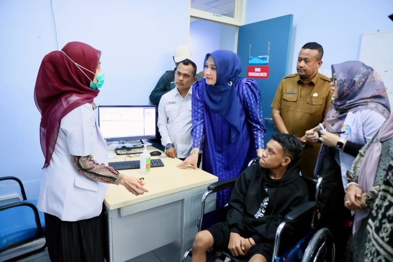 MEDIANAD.COM, BANDA ACEH – Ketua TP PKK Aceh Marlina Muzakir, bersama Istri Ketua DPRA Aceh Rizawati Zulfadli, menyemangati Rahmat Akbar, remaja yang mengalami lumpuh layu akibat kelainan saraf asal Pulo Aceh, yang baru tiba di dermaga Lampulo, Selasa (4/11/2025).