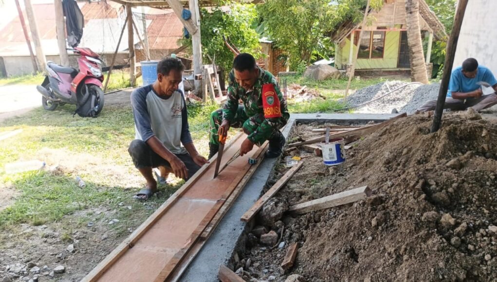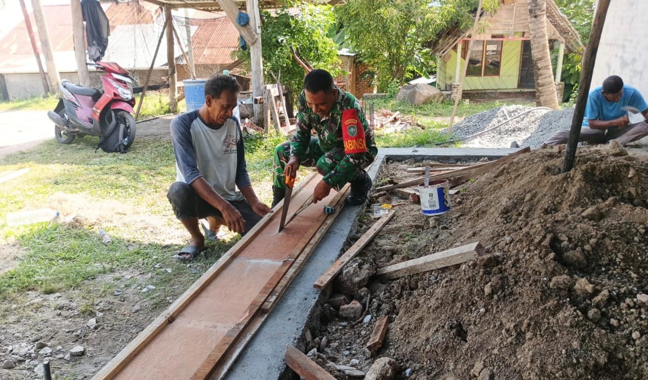 Dalam kegiatan tersebut, Babinsa membantu warga yang tengah memotong triplek untuk dijadikan papan penyangga pengecoran. Kehadiran Babinsa di tengah aktivitas warga tidak hanya memberikan bantuan tenaga, tetapi juga menjadi penyemangat dalam menyelesaikan pekerjaan.