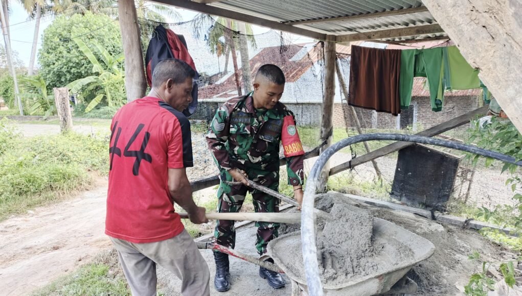 MEDIANAD.COM, SABANG – Kepedulian terhadap warga kembali ditunjukkan oleh aparat kewilayahan. Babinsa 03 Gampong Paya Seunara Koramil 02/Sukakarya Kodim 0112/Sabang, Serka Basuki, terjun langsung membantu tukang bangunan yang sedang bekerja di Jurong Blanggarut, Gampong Paya Seunara, Kecamatan Sukamakmue, Kota Sabang, Minggu (19/04/2026).