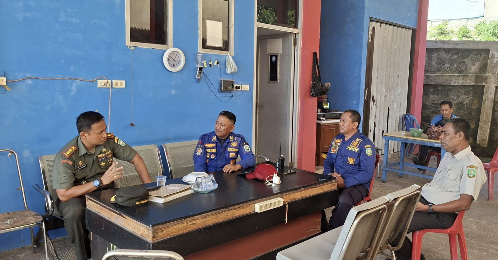Dalam kunjungan tersebut, Dandim diterima langsung oleh Sdr. Edi Albizia, S.T., Analis Pemadam Kebakaran BPBD Kota Sabang yang juga menjabat sebagai Danru Regu 2 Satgas Pemadam Kebakaran dan Penyelamatan. Pertemuan berlangsung dalam suasana hangat dan penuh keakraban, menjadi ajang bertukar informasi dan memperkuat koordinasi lintas instansi.