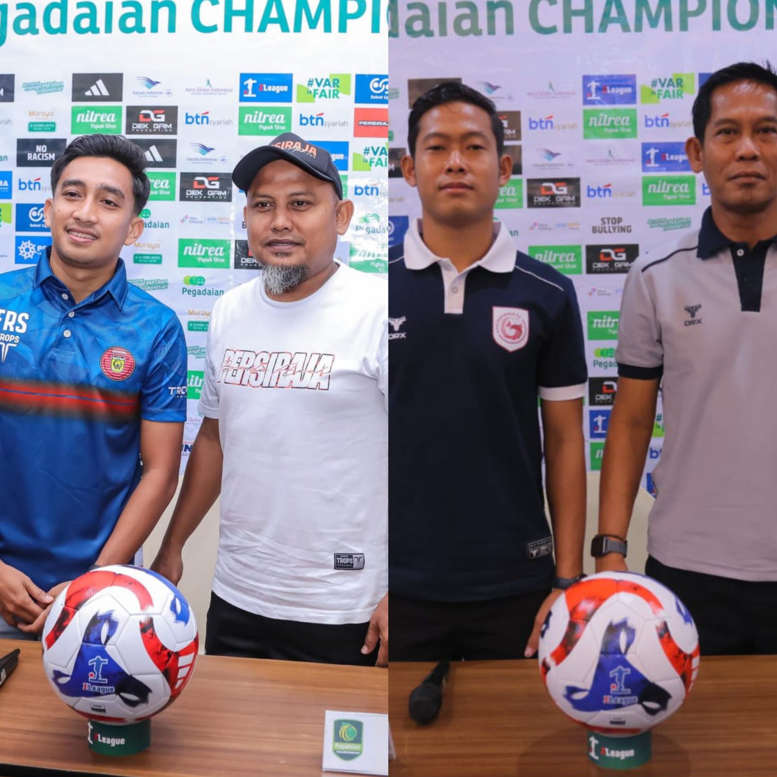Dari kiri ke kanan, Pemain Persiraja Fitra Ridwan, Pelatih Akhyar Ilyas serta pemain Garudayaksa FC, Birul Walidan dan Pelatih Khamit Mulyono usai temu media, Sabtu pagi di Banda Aceh. (foto/kiriman syauki)