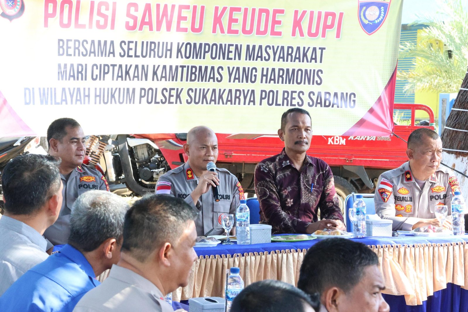 MEDIANAD.COM, SABANG – Rangka pererat silaturahmi sekaligus menyerap aspirasi masyarakat, Kapolres Sabang AKBP Sukoco, S.ST, MM, M.Mar, M.Tr.SOU, M.Han, Saweu Keude Kupi bersama masyarakat Gp.Kuta Barat, Kec.Sukakarya Kota Sabang, Kamis (30/04/2026).