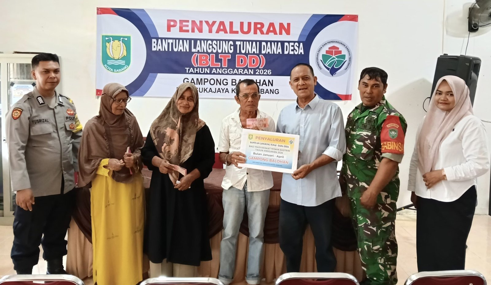 Sebanyak 45 warga Gampong Balohan menerima bantuan sebesar Rp600.000 per orang. Bantuan tersebut merupakan akumulasi untuk periode Januari hingga April 2026, yang diharapkan dapat membantu meringankan beban ekonomi masyarakat.