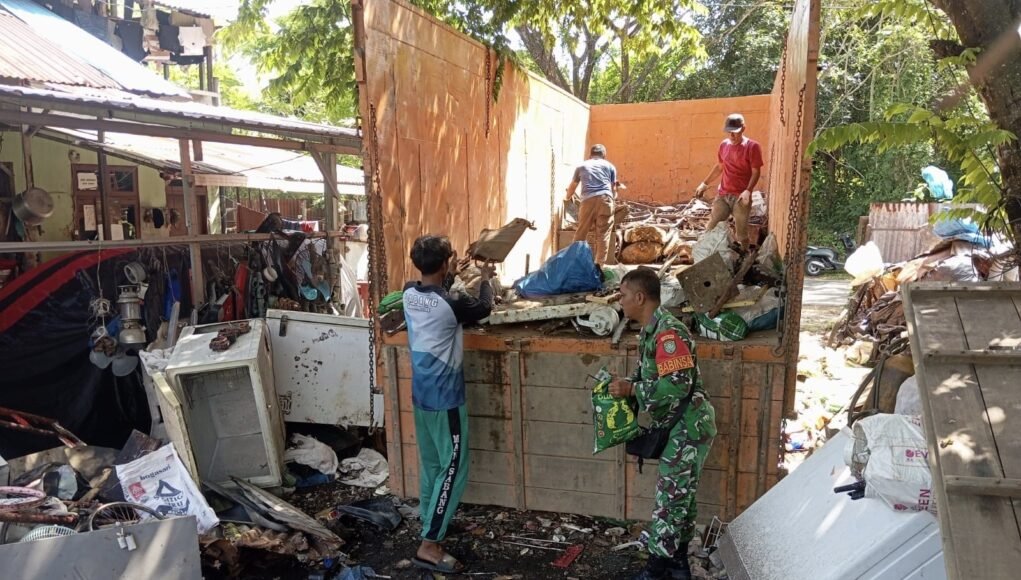 Kegiatan tersebut dilakukan di lokasi usaha pengumpulan barang bekas milik warga. Serka Muliyono terlihat bersama pekerja lainnya mengangkat dan menyusun berbagai barang rongsokan seperti peralatan rumah tangga bekas dan material lainnya ke dalam bak truk untuk selanjutnya dijual lagi ke luar daerah.