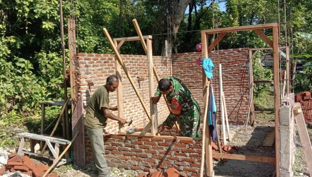Kegiatan tersebut dilakukan dengan membantu proses pengerjaan konstruksi rumah milik Darwin (52), dengan ukuran bangunan 3 x 4 meter. Dalam pelaksanaannya, Babinsa turut ambil bagian dalam pemasangan batu bata hingga kusen jendela bersama para pekerja.