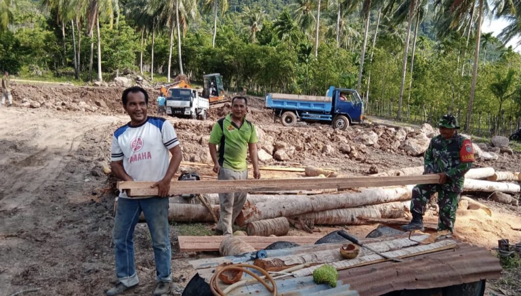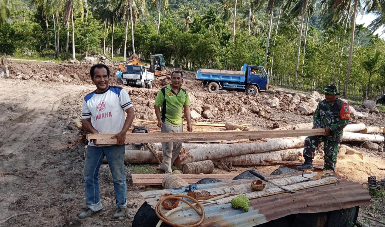 Kegiatan tersebut dilakukan saat Babinsa melihat salah satu warga, Sdr. Sudirman, sedang memindahkan kayu hasil belahan yang telah dipotong menjadi balok berukuran 5 x 10 untuk kebutuhan pembangunan rumah. Melihat hal itu, Sertu Budi Syahputra langsung turun tangan membantu agar pekerjaan dapat terselesaikan dengan lebih cepat dan aman.