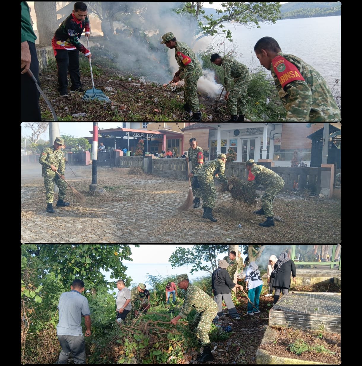 Personel Kodim 0112/Sabang tampak aktif membersihkan sampah organik dan anorganik, memotong rumput liar, serta membersihkan saluran drainase di sejumlah titik strategis. Kehadiran TNI di tengah masyarakat bukan sekadar simbolis, tetapi menjadi motor penggerak dalam aksi nyata peduli lingkungan.